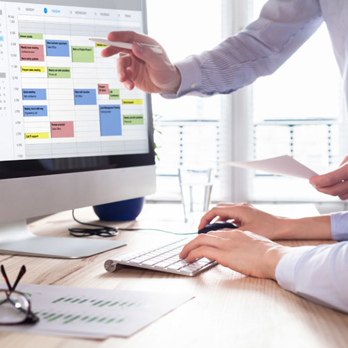 Als Bürokauffrau oder Bürokaufmann für Büromanagement erwarten dich sowohl organisatorische als auch buchhalterische sowie kommunikative Tätigkeiten. Du lernst in deiner Ausbildung, wie man Kassenbücher führt, Geschäftsbriefe verfasst, Mitarbeiter- und Kundendaten verwaltet und Termine koordiniert. Büromanager beantworten außerdem Kundenfragen oder kontaktieren Dienstleister für Auftragsabwicklungen.
