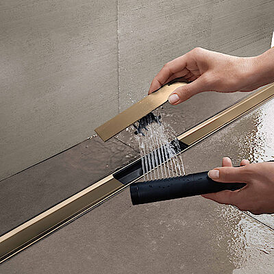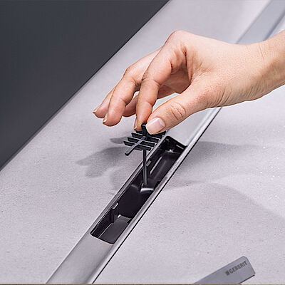 Ein entnehmbarer Kammeinsatz fängt Schmutz und Haare auf und macht den Ablauf besonders reinigungsfreundlich. Das Auswischen des Duschbereichs ist mühelos möglich, da die Duschrinnen eine glatte, offene Ablauffläche haben, in der sich kaum Ablagerungen bilden können. Zudem sind die Cleanline80 und CleanLine50 in der Farbe schwarzchrom mit einer Easy-to-clean-Beschichtung versehen, die Abdrücke und Verschmutzungen reduziert.