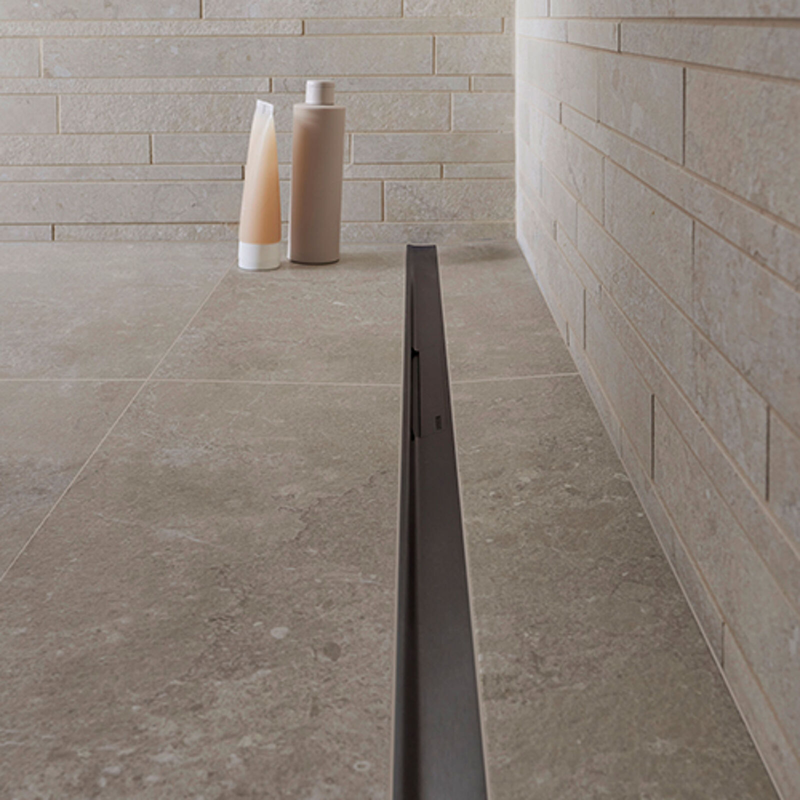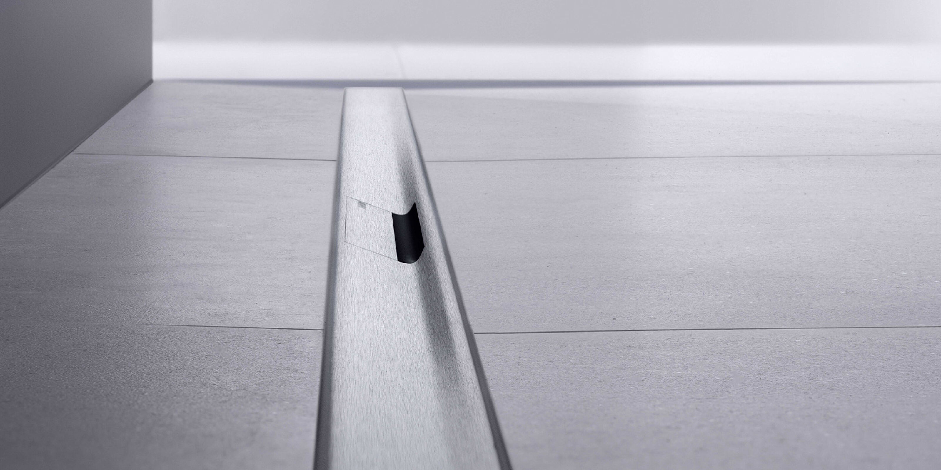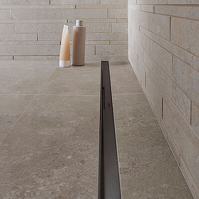 Die Geberit Duschrinne CleanLine50 verfügt über ein integriertes Gefälle für eine schnelle Wasserableitung.