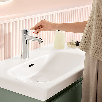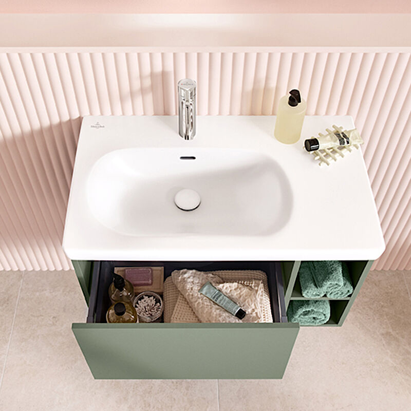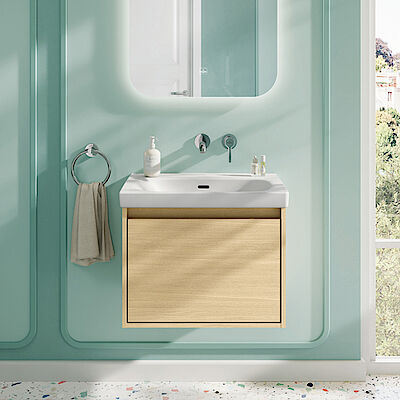 Modern, trendstark, individuell – Mit Skyla bringt Villeroy & Boch frischen Wind ins Bad. Die spannende Verbindung aus sanften Rundungen, klaren Kanten und einer asymmetrischen Formensprache setzt ein echtes Design-Statement. Dank der Vielfalt an modernen Möbelfarben und mit zwei unterschiedlichen Armaturen-Finishes passt sich Skyla mühelos jedem Wohnstil an und lässt sich je nach persönlichem Geschmack entweder skandinavisch schlicht, mit lockerem Boho-Vibes oder in zarten Danish-Pastels inszenieren.
