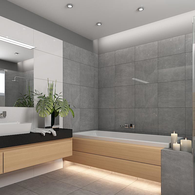 Ein hoher Blauanteil Ihrer Waschtischbeleuchtung zum Beispiel, sorgt für jede Menge Energie und einen guten Start in den Tag. Deckenstrahler mit einer Milchglasabdeckung als Blendschutz verhindern, dass Sie beim Wannenbad geblendet werden. Mit einem ausgereiften Beleuchtungskonzept setzen unsere Badprofis besondere Akzente in Ihrem Bad und sorgen für die entspannte Wohlfühlatmosphäre.