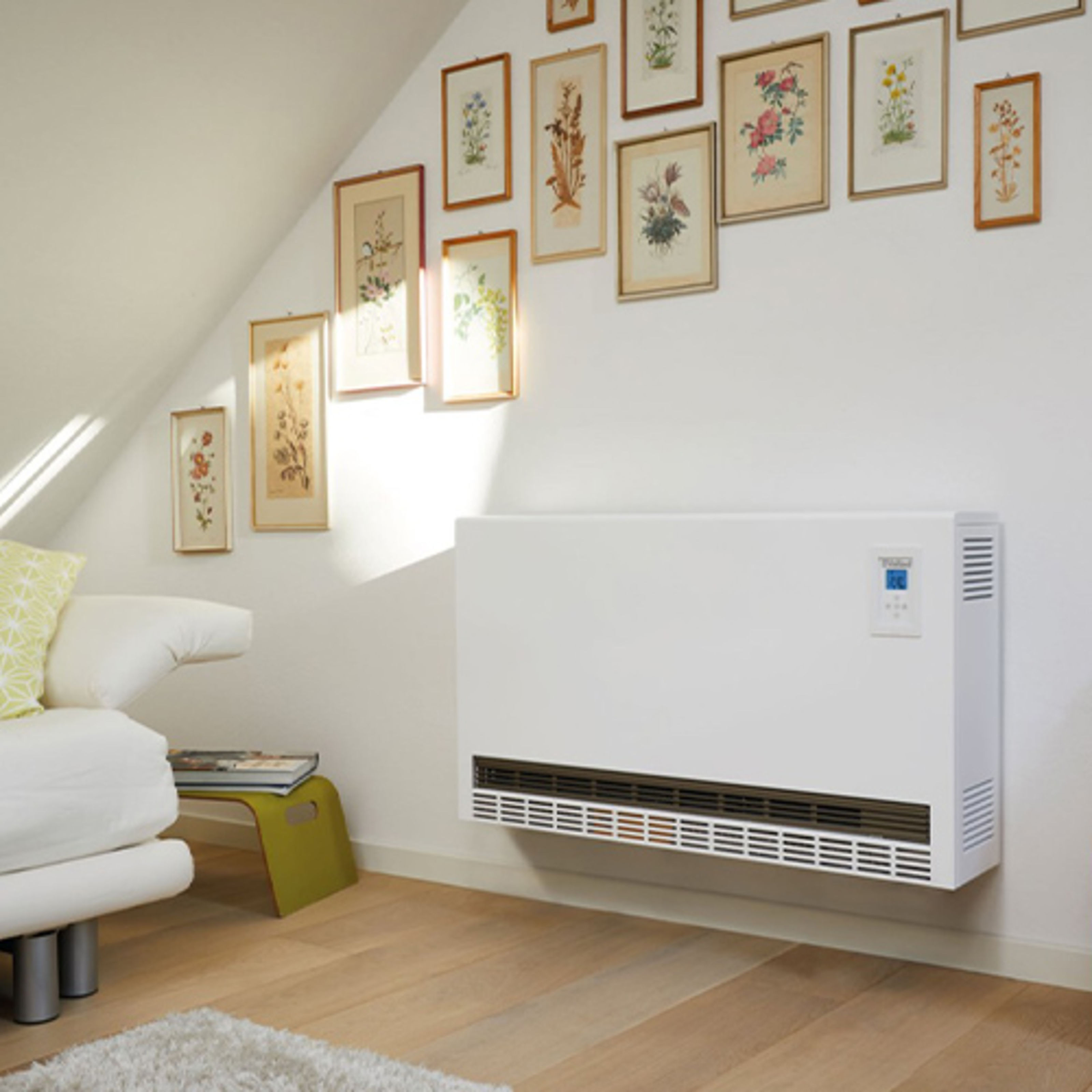 Elektroheizungen ermöglichen die unabhängige Beheizung einzelner Räume, sollten jedoch eher als Übergangslösung betrachtet werden. Der günstigen Anschaffung und einfachen Bedienung der Heizung stehen hohe Betriebskosten und CO2-Emissionen gegenüber. Moderne Infrarotheizungen sind zwar streng genommen ebenfalls Elektroheizungen, sie funktionieren jedoch nach einem anderen Prinzip: Ihre Strahlungswärme erwärmt nicht die Raumluft, sondern die Wände, Decken, Möbel und Körper direkt. So lassen sie sich gut in bestehende Raumkonzepte integrieren, beispielsweise als Spiegelheizungen im Badezimmer.