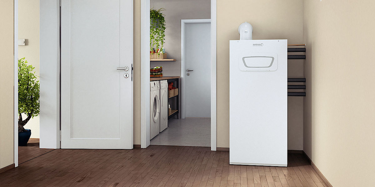 Abluft-Wärmepumpen nutzen die thermische Energie, die die Raumluft durch Heizkörper und Flächenheizungen, aber auch durch Beleuchtung, elektrische Geräte oder Körperwärme aufnimmt. Durch ein System mit kontrollierter Wohnungslüftung, Wärmerückgewinnung und Abluft-Wärmepumpe lässt sich diese Energie wiederverwenden. Da die Abluft gegenüber der Außenluft nur in begrenzter Menge zur Verfügung steht, muss die Leistung der Abluftwärmepumpe gut eingestellt werden. Sie planen ein System aus kontrollierter Wohnraumlüftung, Wärmerückgewinnung und Abluft-Wärmepumpe als einzige Heizquelle? Dann sollte ihr Haus einen hohen Effizienzstandard haben oder ein sogenanntes Niedrigenergie- oder Effizienzhaus sein.