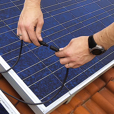 Die Photovoltaik-Anlage besteht grundsätzlich aus den Solarzellen in den Solarmodulen, einem Wechselrichter für die Stromumwandlung und weiteren Schaltvorrichtungen.