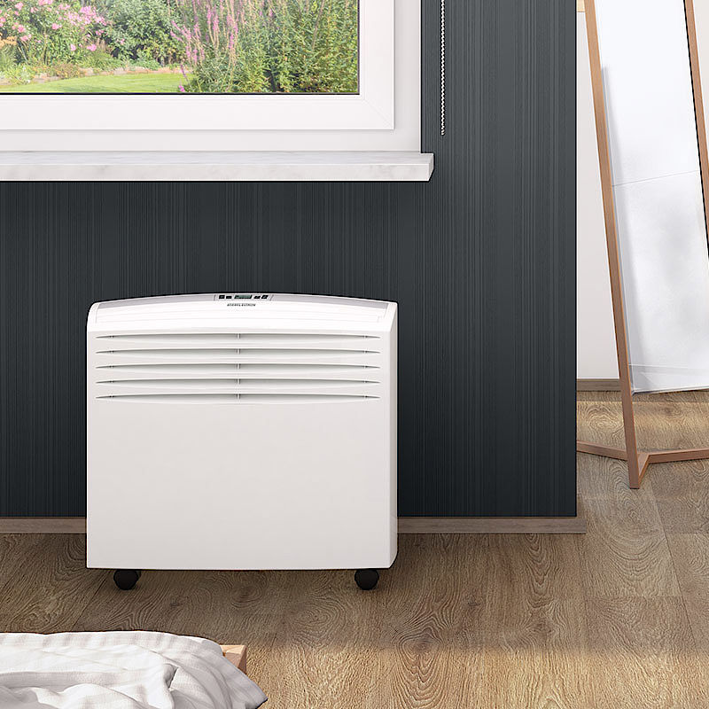 Dieses Modell lässt sich je nach Typ flexibel verwenden und ist besonders einfach zu installieren. Über einen Abluftschlauch wird die Hitze ins Freie befördert. Der Nachteil: Der Schlauch muss durch einen Tür- oder Fensterspalt nach draußen geführt werden. Durch diese Öffnung dringt laufend neue Hitze in den Raum. Der eigentliche Kühleffekt wird dadurch reduziert, weshalb der Betrieb nicht sehr wirtschaftlich ist. Außerdem ist mit einem erhöhten Geräuschpegel zu rechnen.