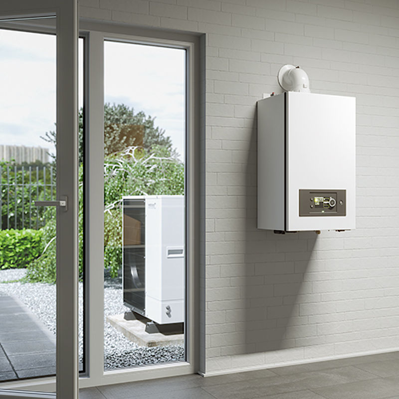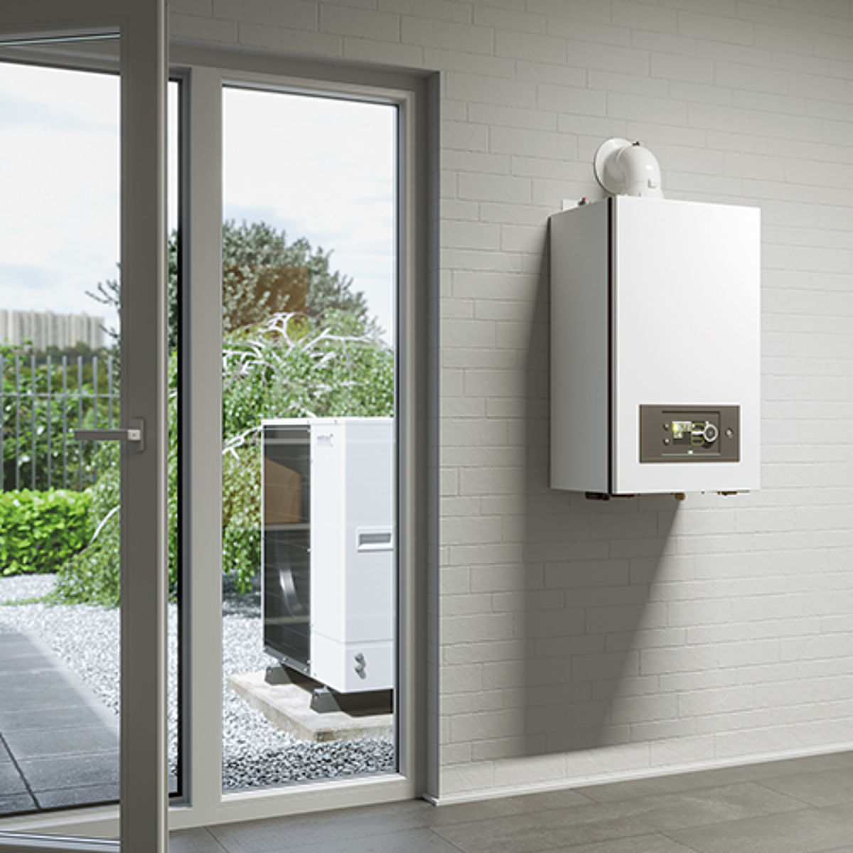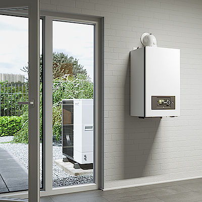 Hybridtechnologie zeichnet sich durch das Zusammenspiel von mindestens zwei Komponenten aus, die gemeinsam zum individuellen Energiemix beitragen. Neben einer uneingeschränkt leistungsstarken fossilen Komponente, wie z. B. einer Gas-Brennwerttherme, ist mindestens eine Komponente regenerativ und damit nachhaltig, wie zum Beispiel eine Wärmepumpe oder eine Solaranlage. Das intelligente Regelungssystem entscheidet sich bei veränderlichen Rahmen-